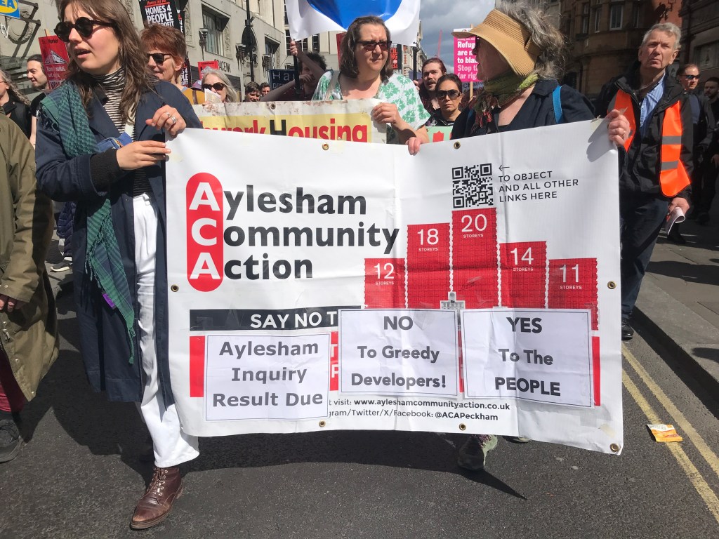 Banners and placards from hundreds of estate and borough campaigns were on display, including many Just Space members and supporters from Southwark and Lewisham to Hackney and Haringey, as well as pan-London campaigns like the London Gypsy & Travellers and Refurbish Don’t Demolish.